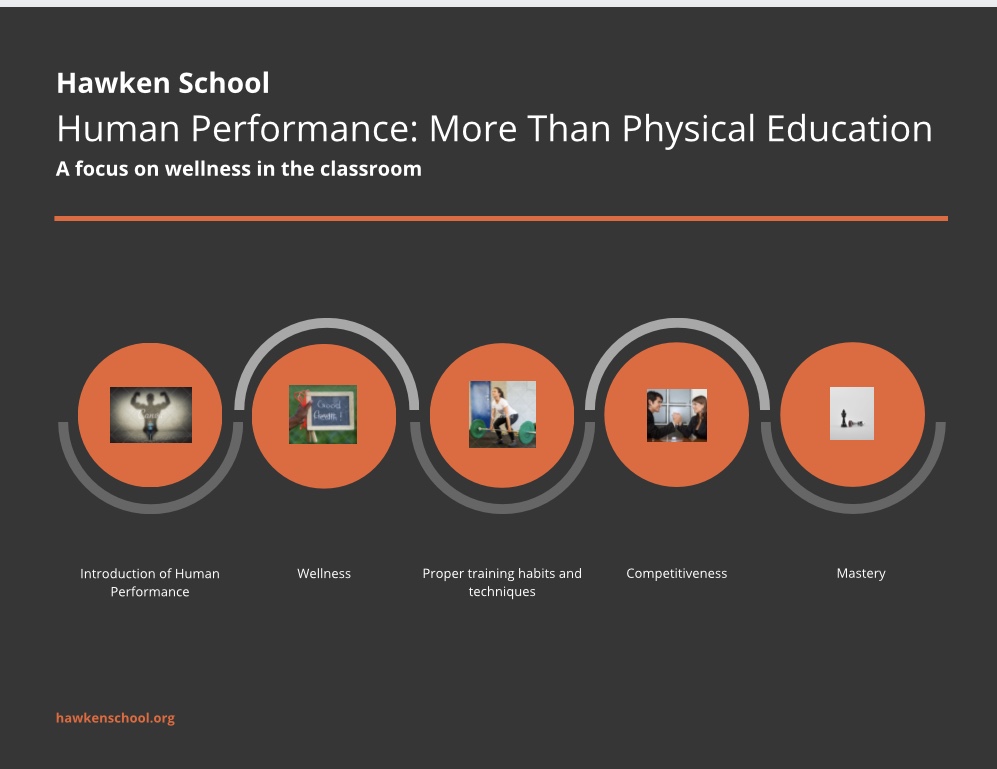 Voice Over: In the fall of 2019, Hawken’s Physical Education program was re-established as the Human Performance Department. The goal of Human Performance, in coordination with Hawken’s Athletic Department and Strength Program, is to provide fully integrated, developmentally appropriate curriculum and programming for all Hawken students. The long-term active development approach features a continuum from kindergarten through grade 12. (during this intro, there are graphics of students form K-12 engaging in different activities.)